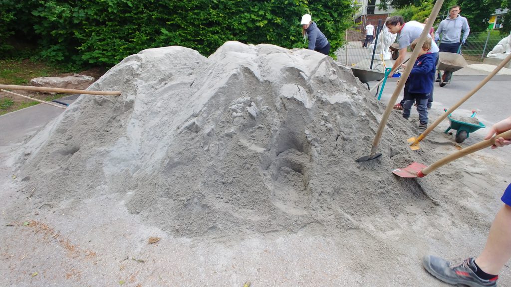 Am 28.05.22 half der Förderverein zusammen mit den Eltern neuen Sand in den Sandkasten des Kindergartens einzubringen. Auch die Kinder halfen fleissig mit und hatten ihren Spass. Im Anschluss gab es in den Kitaräumen Bratwürste und Getränke, die bei einem netten Plausch verzehrt wurden.